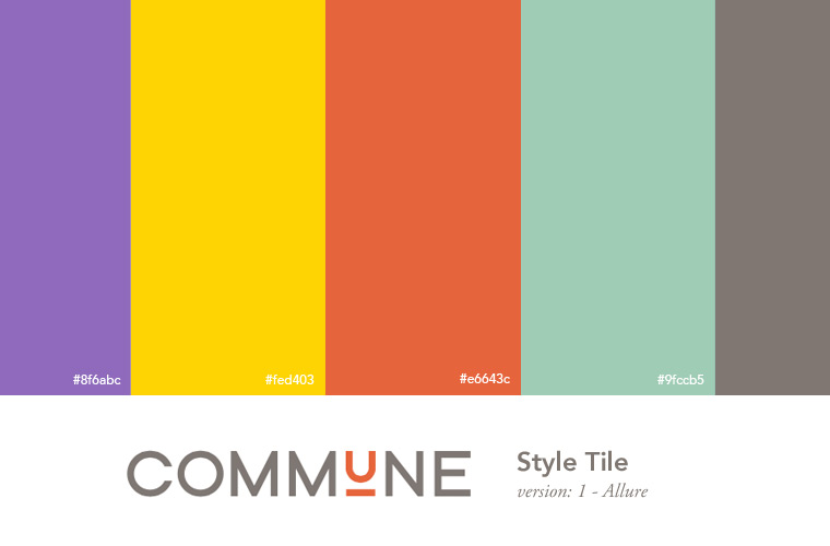 • After listening carefully and hearing about your objectives, I create "Style Tiles". Style tiles are a design deliverable consisting of fonts, colors and interface elements that communicate the essence of a visual brand. They help form a common visual language between the designers and the
